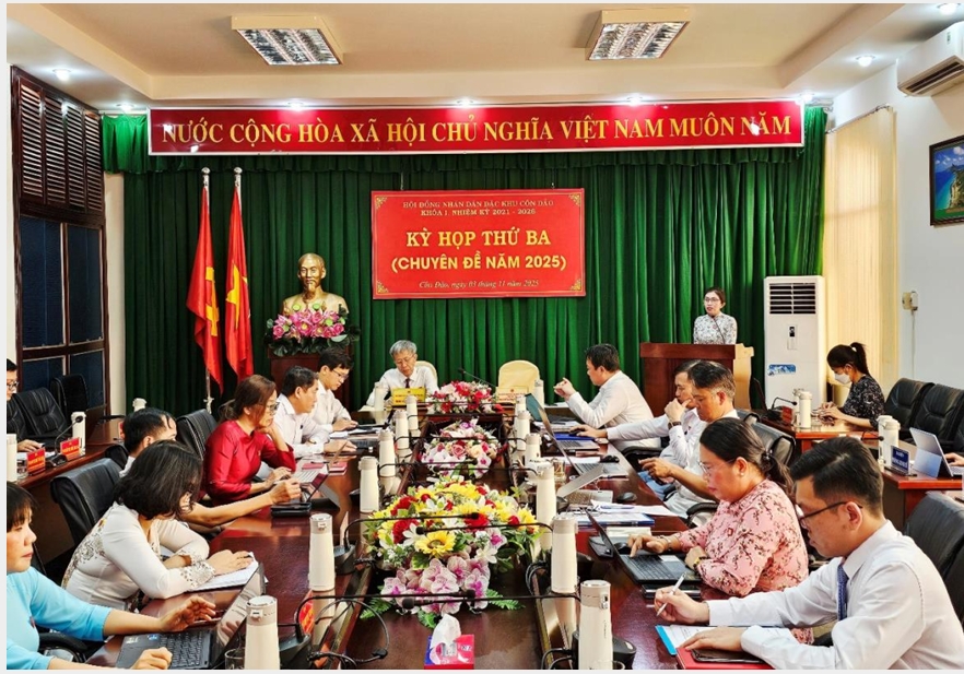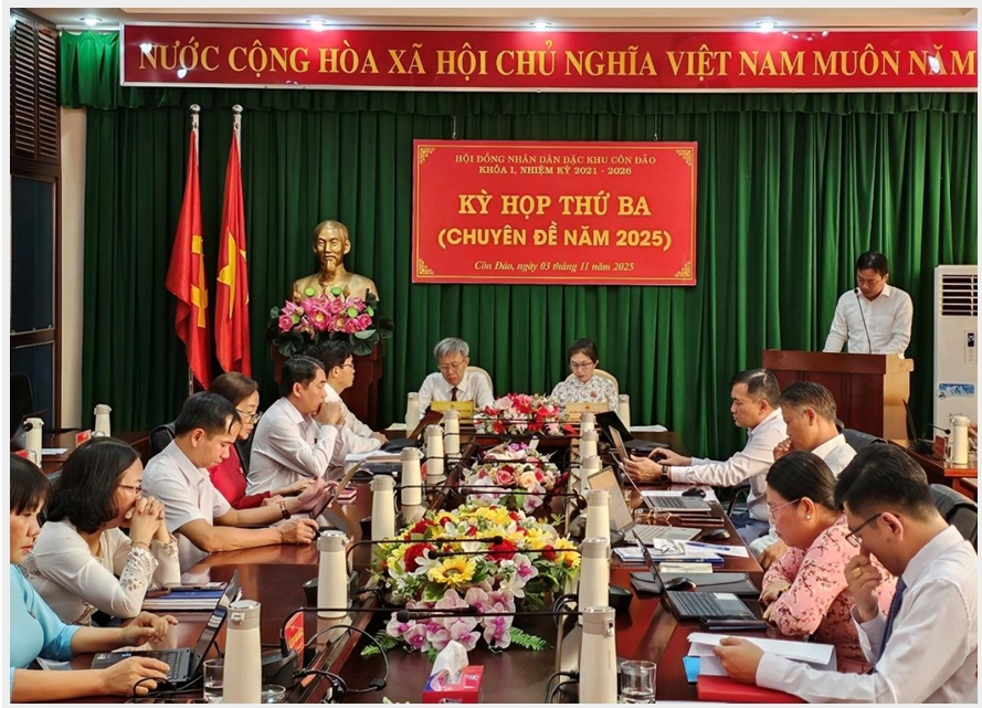 Ngày 03/11/2025, Hội đồng nhân dân đặc khu Côn Đảo khóa I long trọng tổ chức kỳ họp thứ 3 (kỳ họp chuyên đề) để xem xét các vấn đề do Ủy nhân dân đặc khu trình theo luật định. Tham dự kỳ họp có ông Nguyễn Anh Nhựt – Phó Bí thư Đảng ủy, Chủ tịch Hội đồng nhân dân đặc khu; bà Nguyễn Thị Thu Thảo – Phó Chủ tịch Hội đồng nhân dân đặc khu; ông Phan Trọng Hiền – Phó Bí thư Đảng ủy - Chủ tịch Ủy ban nhân dân đặc khu; ông Nguyễn Văn Mạnh – Phó Chủ tịch Ủy ban nhân dân đặc khu; bà Nguyễn Thị Thu Thảo – Phó Chủ tịch UBMTTQ Việt Nam; lãnh đạo các Ban của Hội đồng nhân dân, các Ủy viên Ủy ban nhân dân đặc khu, lãnh đạo các cơ quan chuyên môn và toàn thể các vị đại biểu Hội đồng nhân dân đặc khu khóa I nhiệm kỳ 2021 – 2026 tham dự. Chủ tọa kỳ họp do ông Nguyễn Anh Nhựt - Phó Bí thư Đảng ủy, Chủ tịch Hội đồng nhân dân và bà Nguyễn Thị Thu Thảo – Phó Chủ tịch Hội đồng nhân dân đặc khu chủ trì.