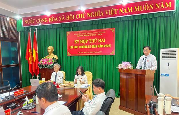 Phát biểu khai mạc Kỳ họp, Chủ tịch HĐND đặc khu Côn Đảo nhấn mạnh ý nghĩa quan trọng của kỳ họp lần này là đánh giá toàn diện tình hình thực hiện các chỉ tiêu, nhiệm vụ phát triển kinh tế - xã hội, quốc phòng - an ninh trong 6 tháng đầu năm 2025 và đề ra phương hướng, nhiệm vụ trọng tâm 6 tháng cuối năm. Kỳ họp cũng đóng vai trò định hướng quan trọng cho việc vận hành bộ máy chính quyền đặc khu trong thời gian tới, thể hiện sự đổi mới, quyết liệt, sát với thực tiễn và đáp ứng yêu cầu phát triển bền vững của Côn Đảo; đề nghị đại biểu HĐND đặc khu tập trung nghiên cứu, thảo luận và quyết nghị tại kỳ họp với tinh thần thẳng thắn, trách nhiệm.