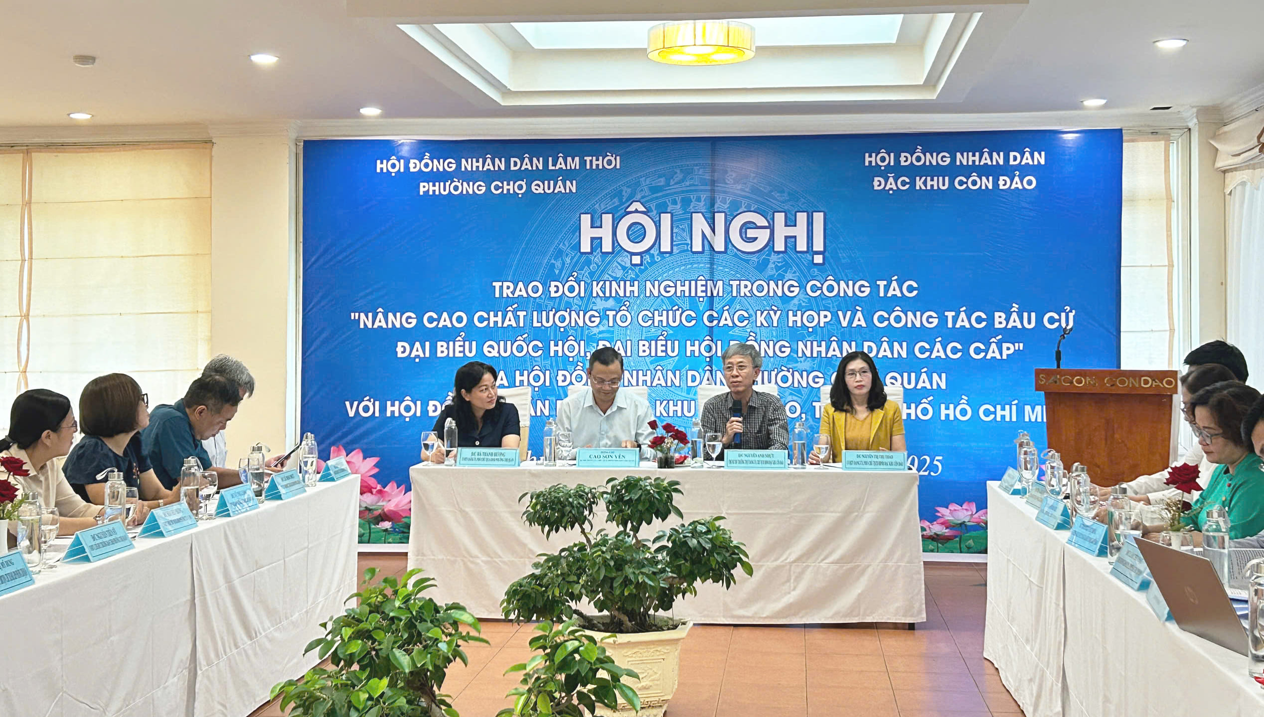 Vào lúc 15 giờ 00 phút, ngày 06 tháng 11 năm 2025, tại Hội trường Khách sạn Sài Gòn Côn Đảo, Thường trực Hội đồng nhân dân (HĐND) đặc khu Côn Đảo đã phối hợp cùng Đoàn công tác của HĐND Phường Chợ Quán (Thành phố Hồ Chí Minh) tổ chức thành công Hội nghị chuyên đề Nâng cao chất lượng tổ chức các kỳ họp HĐND, công tác chuẩn bị bầu cử đại biểu Quốc hội và đại biểu HĐND các cấp.