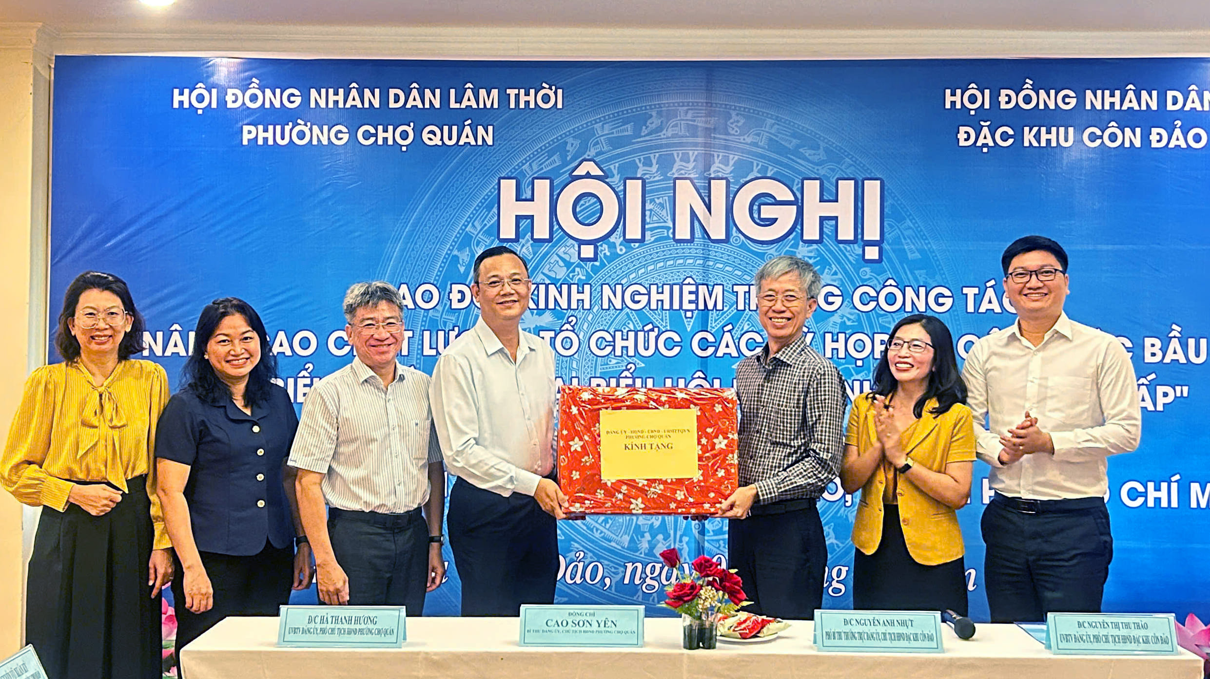 Hội nghị chuyên đề đã thành công tốt đẹp, góp phần tạo điều kiện cho hoạt động của cả hai đơn vị trong thời gian tới thực sự hiệu quả và thiết thực. Trong khuôn khổ Hội nghị, đại diện HĐND phường Chợ Quán và HĐND đặc khu Côn Đảo đã trao đổi những món quà lưu niệm trang trọng.